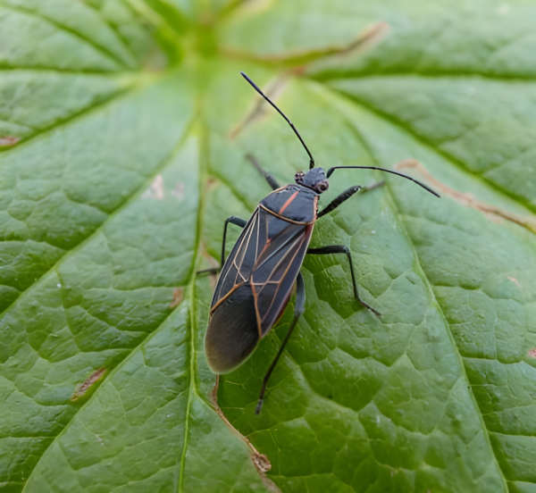 Box Elder Bugs (Boisea trivittata) are small, black insects with distinctive red markings along the edges of their wings and bodies. Adult bugs are about half an inch in length, with elongated bodies and wings that create a V-shape when viewed from above. They are most commonly found on Boxelder trees, which serve as their primary food source, but they are also drawn to other types of maples and ash trees.